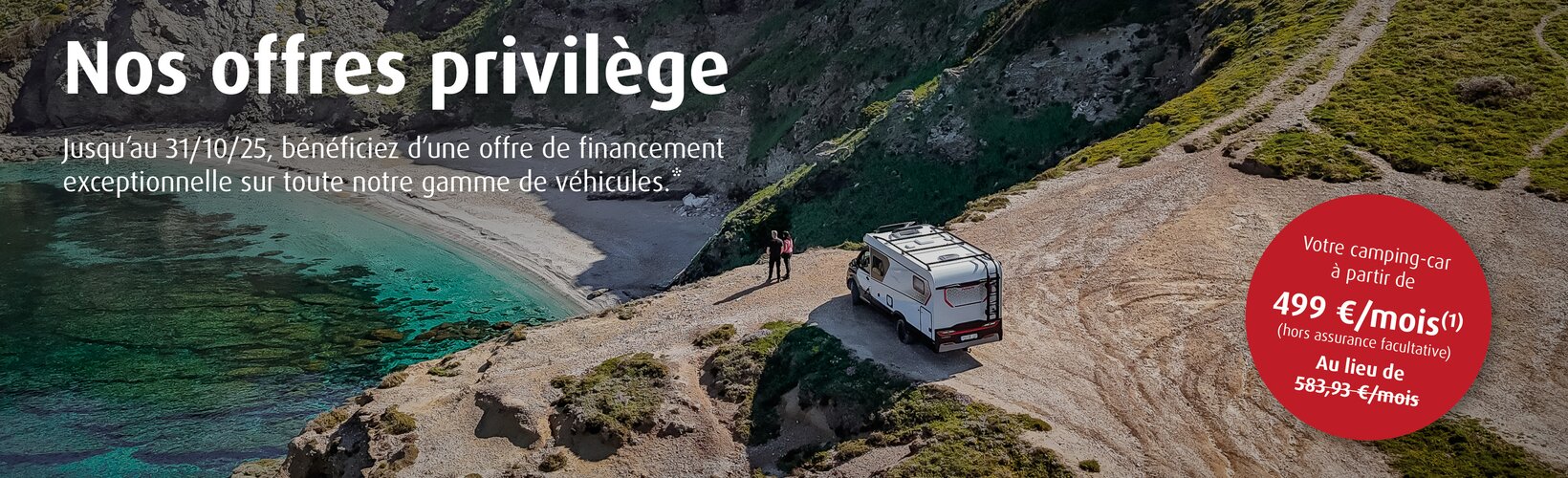 *Valable uniquement sur des véhicules en stocks pour une commande d'un véhicule Dethleffs neuf millésimé 2025 et 2026 ou antérieur jusqu'au 31 octobre 2025.